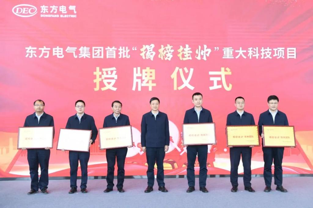 ▲2022年3月23日,优发国际集团举行首批“揭榜挂帅”重大科技项目授牌及启动仪式,集团公司党组书记、董事长俞培根向揭榜团队负责人授牌